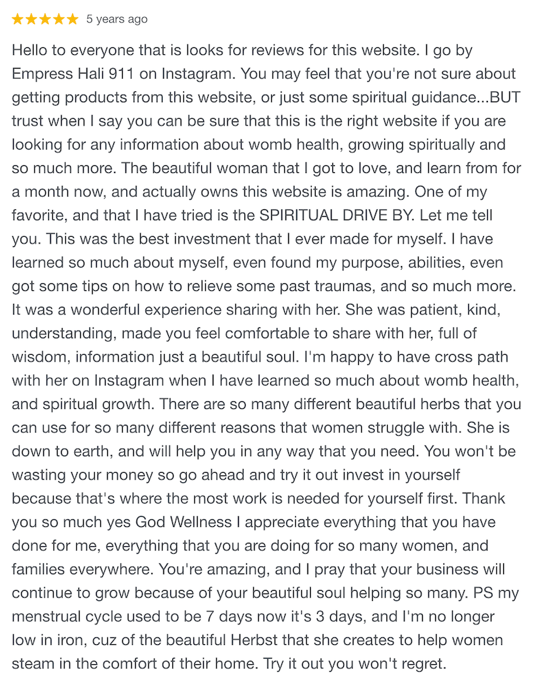 Yoni steaming was one of the catalysts that allowed me to connect back to my true essence… GOD. It allowed me to begin to release trauma and be vulnerable and honest with myself. It not only felt amazing but it started to high light my womb heart connection. It changed my life.