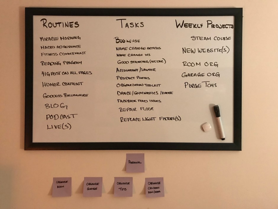 I am so pleased to report that I knocked off three main projects already within one week of doing this practice! I re-organized my room, my garage (my warehouse), purged the children’s toys and today I will be tackling the kitchen and remaining spaces in my home. What I realized during the organization of physical spaces was so profound and really  in alignment with my earlier brain dump activity.  The things that we are storing (mentally or physically) need to come out in the open so we can evaluate them. I found so many things that I could re-purpose and I also found a lot of things that really no longer line up with the vision that I currently have for my life. This reinforced to my why it is so important to really take the time to visualize what your ideal life looks like. Things that were ideal to me last year are no longer ideal to me today. Things that I want to do on a day to day basis have evolved and grown.